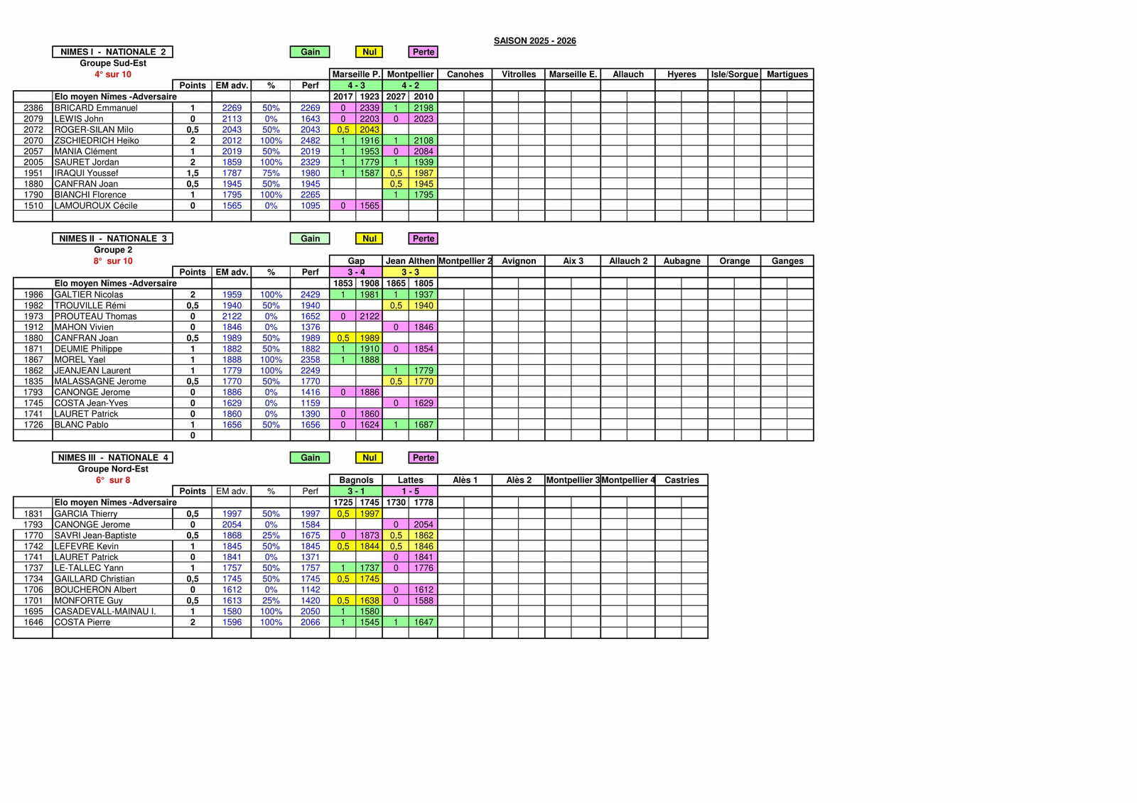En Ligue, Nîmes 4 a gagné à Langogne tandis que nos équipes 5 et 6 se sont inclinées.